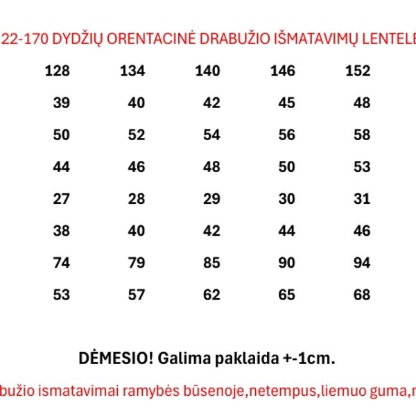 Matuojant prašome atsižvelgti ,kad ne visi audiniai yra su elastanu (tamprūs).